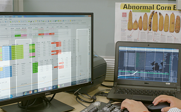 育種團(tuán)隊(duì)擁有自動(dòng)化脫粒流水線、手持?jǐn)?shù)據(jù)采集終端等先進(jìn)農(nóng)業(yè)科研設(shè)備。目前投入使用的研究型播種機(jī)和收割機(jī)采用商用全球衛(wèi)星定位系統(tǒng)進(jìn)行導(dǎo)航以保證嚴(yán)格按照試驗(yàn)設(shè)計(jì)種植,收獲時(shí)可實(shí)時(shí)獲得小區(qū)的產(chǎn)量、水分和容重等數(shù)據(jù)。在數(shù)據(jù)處理方面,育種部成功實(shí)現(xiàn)了與拜耳育種數(shù)據(jù)庫的對接,并利用相關(guān)軟件進(jìn)行種質(zhì)資源管理、育種計(jì)劃制定、田間試驗(yàn)設(shè)計(jì)、數(shù)據(jù)分析及育種決策等工作。由此,育種團(tuán)隊(duì)在全國率先實(shí)現(xiàn)了種質(zhì)管理?xiàng)l碼化、數(shù)據(jù)采集無紙化、播種收獲機(jī)械化,育種決策信息化。