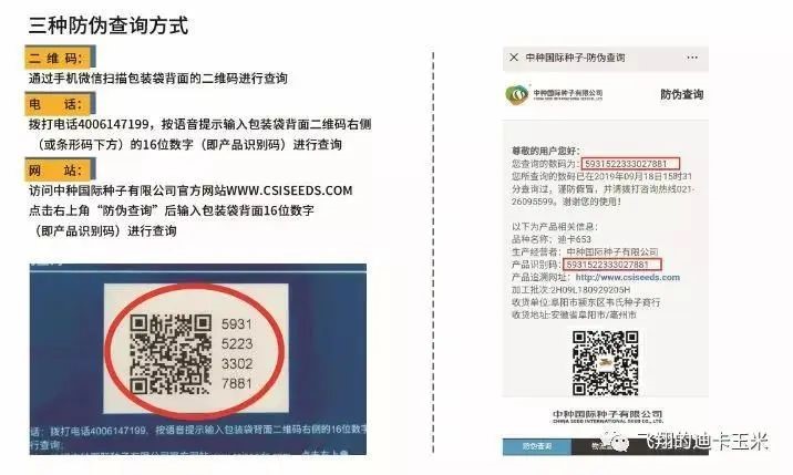 官方微信等各類推文中我們多次科普過迪卡品牌玉米種子的驗真方法,在此再次提醒大家,購買種子時請用以下方式辨認產(chǎn)品真假: