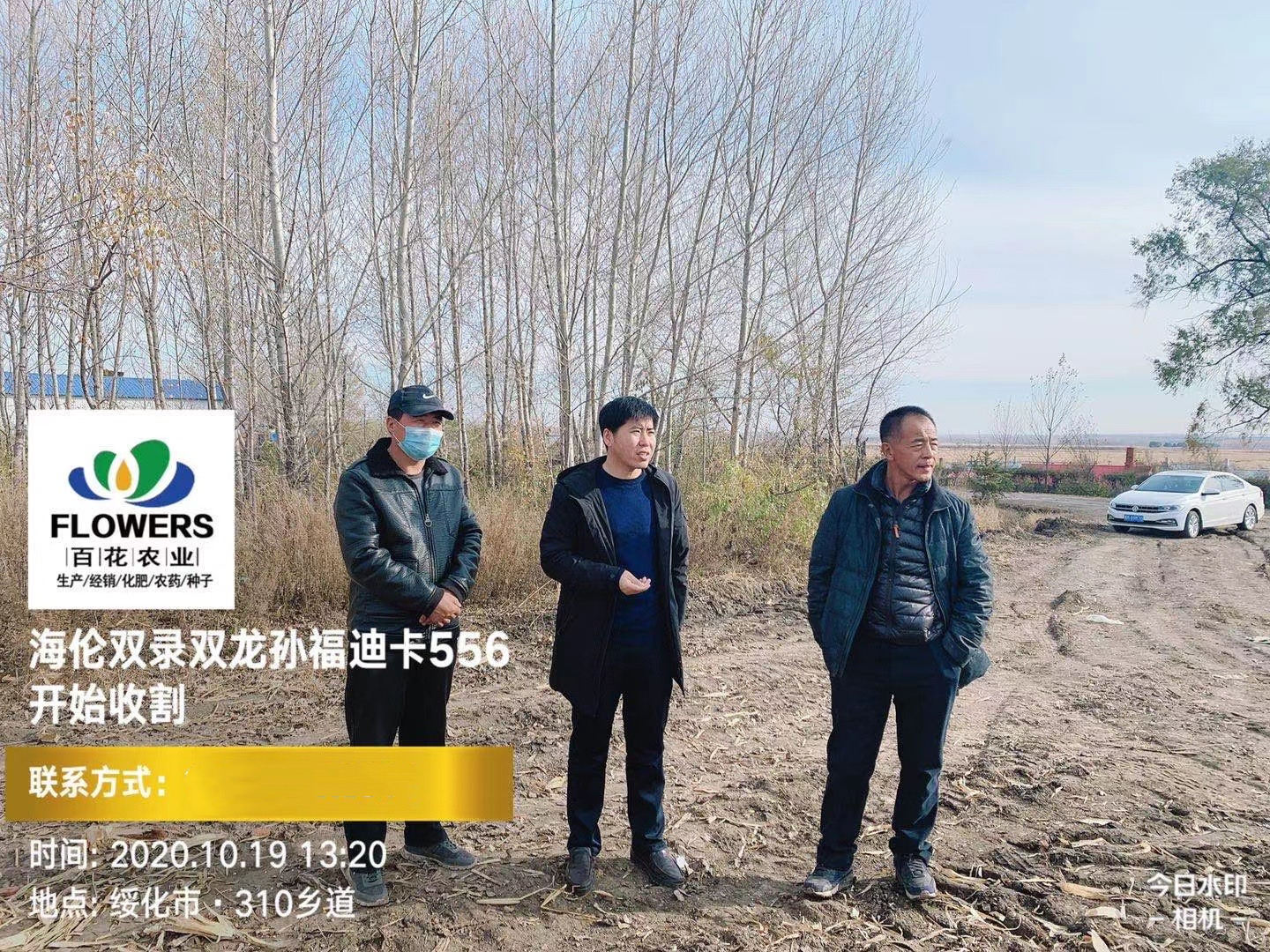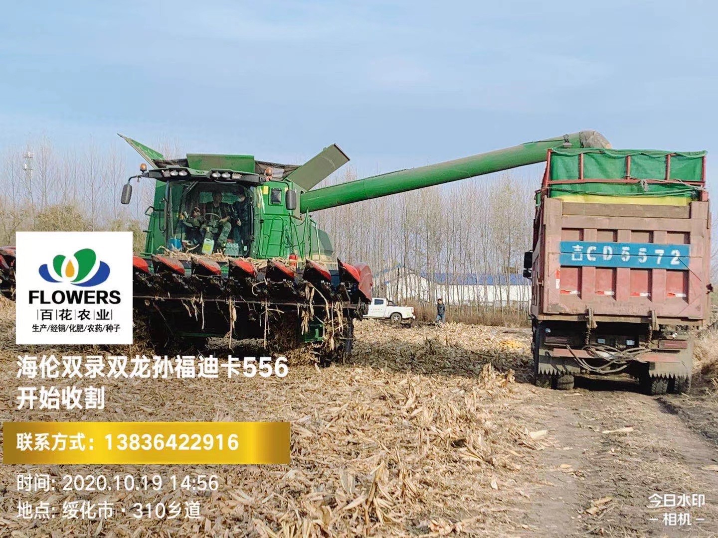 雙錄鄉(xiāng)雙龍村(2300℃積溫)地主孫大哥種植的48坰迪卡556開始收割。隨機(jī)GPS測量3.11坰共產(chǎn)糧39.38噸,合坰產(chǎn)25,320斤,含水量31%,每公頃收入21,272元,創(chuàng)下該區(qū)域最高收入記錄和干糧產(chǎn)量最高記錄。
